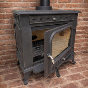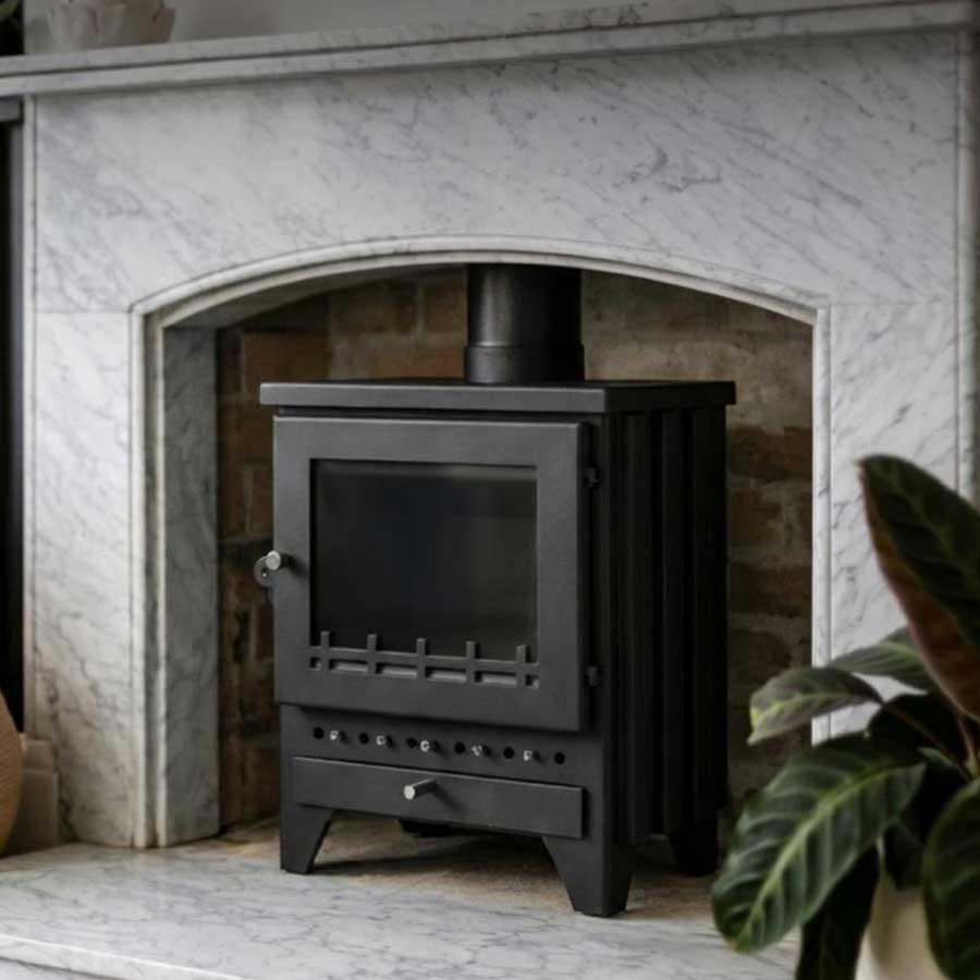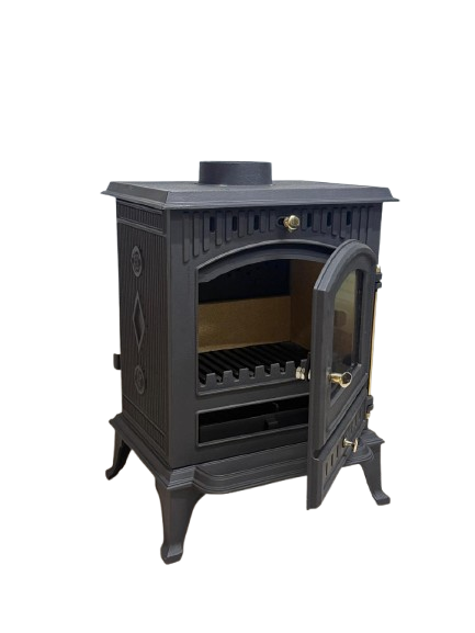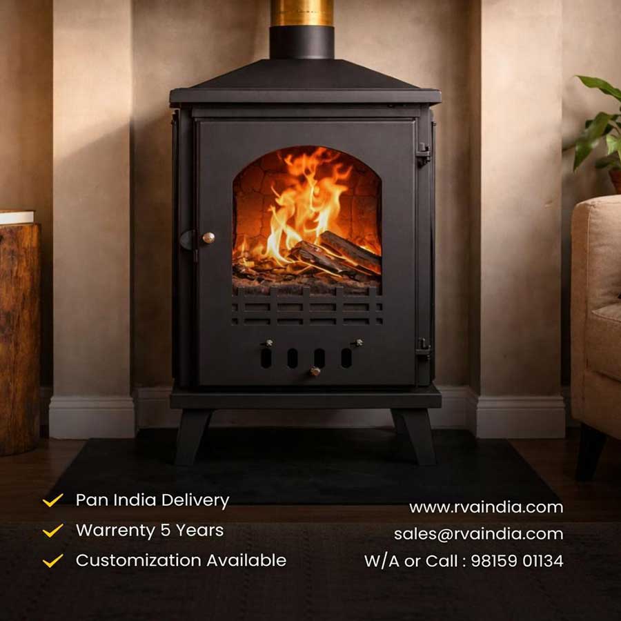 RVA Premium Gold Decorative Electric Fireplace 34 inches with Remote With Heat Matt Black, Gold Finish Mantel (GRHF-3424-02CFH)